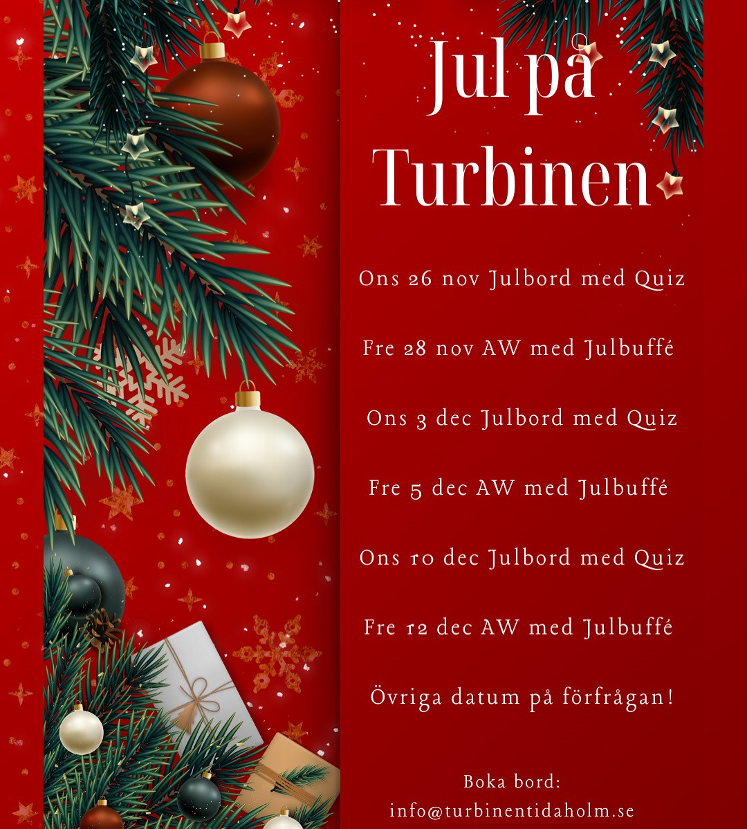 Boka bord: info@turbinentidaholm.se
